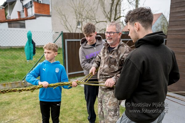 V sobotu kluci upletli kančúch dlouhý téměř 12 metrů - pořádný kus práce! Na velikonoční pondělí pak s králem Markem Dacíkem obešli všechny družice, kde nechyběla dobrá nálada a milé přijetí.